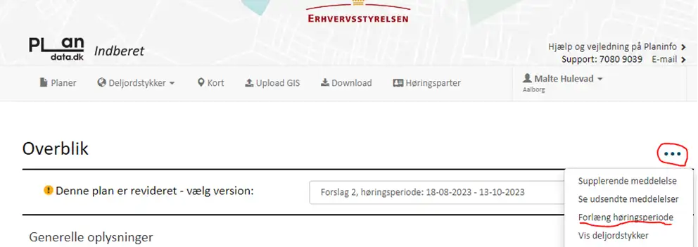 1. Ved at forlænge høringsperioden er det muligt at uploade et nyt plandokument.