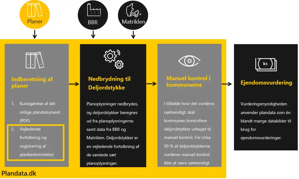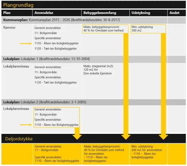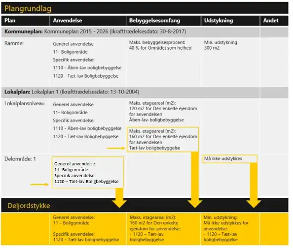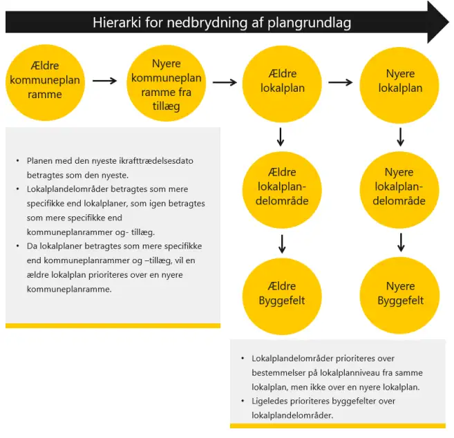 Nedbrydningen af bestemmelser til deljordstykker tager den nyeste og mest specifikke plan. Dette betyder, at hvis to eller flere planer på samme planniveau og med den samme ikrafttrædelsesdato overlapper hinanden, kan nedbrydningen ikke gennemføres, og berørte deljordstykker udtages til manuel kontrol i kommunen. Dette kan eksempelvis ske, hvis to lokalplandelområder inden for samme lokalplan overlapper hinanden.