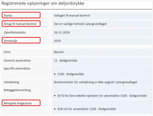 Når et deljordstykke udtages til manuel kontrol i kommunen, er det muligt at korrigere dets oplysninger om anvendelse, omfang og udstykning, inden man godkender det. ”Særlige forhold” kan derfor bruges til eksempelvis at gøre opmærksom på, at en registreret bestemmelse på en lokalplan ikke er gældende for hele lokalplanen; det kan være, at bebyggelsesprocenten på et jordstykke afviger fra det øvrige planområde, og hvis det markeres som ”særlige forhold”, der kræver manuel kontrol, bliver det muligt at korrigere oplysningen på de deljordstykker, hvor det er relevant. Øvrige deljordstykker under planen vil i så fald også blive udtaget til manuel kontrol, men kan godkendes uden korrigering – såfremt der ikke er yderligere forhold, der nødvendiggør korrigering.