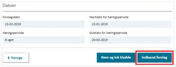 Figur 8. Forslaget offentliggøres ved at klikke "Indberet forslag".