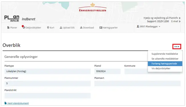 - Planer med ikrafttrædelsesdato efter 15. juni 2017: Hvis planmyndigheden finder, at det uploadede plandokument har fejl og derfor ikke stemmer overens med det plandokument der er vedtaget af kommunalbestyrelsen, er det muligt at uploade det korrekte plandokument. Plandokumentet udskiftes ved at rette henvendelse til Plandata.dk supporten, som samtidigt udsender en supplerende meddelelse, der oplyser høringsparter i Plandata.dk om det korrigerede plandokument.