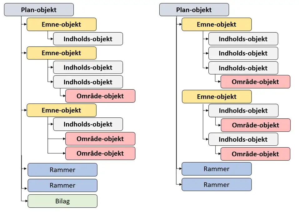 For indholds-objekterne er det på samme måde som for emne-objekterne muligt at registrere både en titel og et tekstfelt, samt angive i hvilken læseorden indholds-objekterne skal læses i. Dertil er det muligt at registrerer en §-henvisning til Planloven.