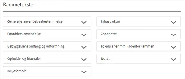Udover de obligatoriske anvendelses-, omfangs- og udstykningsbestemmelser, er der for kommune-planrammer mulighed for at indberette beskrivende rammetekster knyttet til den enkelte ramme, Figur 15.