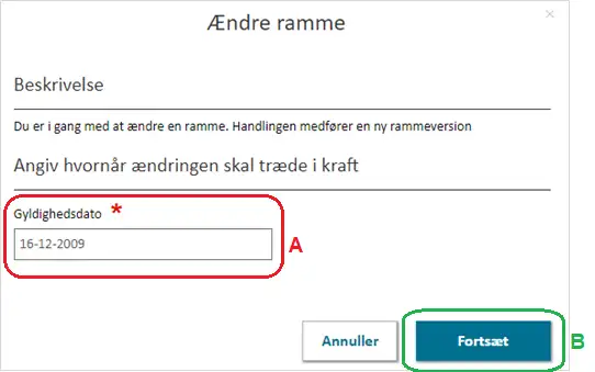 Regulerer rammen ikke omfangsbestemmelser sættes flueben i ”Marker her, hvis rammen ikke indeholder omfangsbestemmelser”, Figur 13, A.