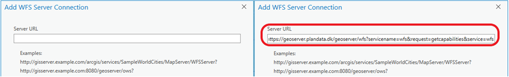 Der åbnes nu et nyt vindue, hvor du kan indsætte den ønskede URL øverst under Server URL og derefter trykke OK: