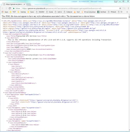 Herefter kan alle services ses i toppen af WFS-vinduet. Har du flere end én gemt, kan du trykke på pilen og få vist en liste med alle gemte services.