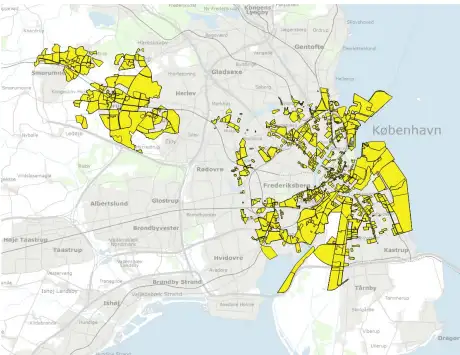 Dette eksempel tager udgangspunkt i en søgning i forhold til kommunegrænser.